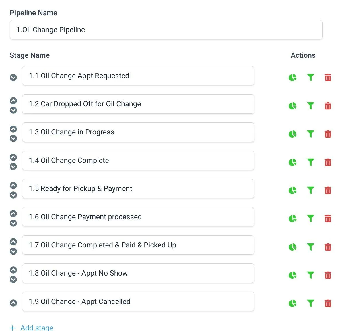 This is just a SAMPLE of the Oil Change Pipeline. Each business handles things differently so this can be modified - changed as needed.